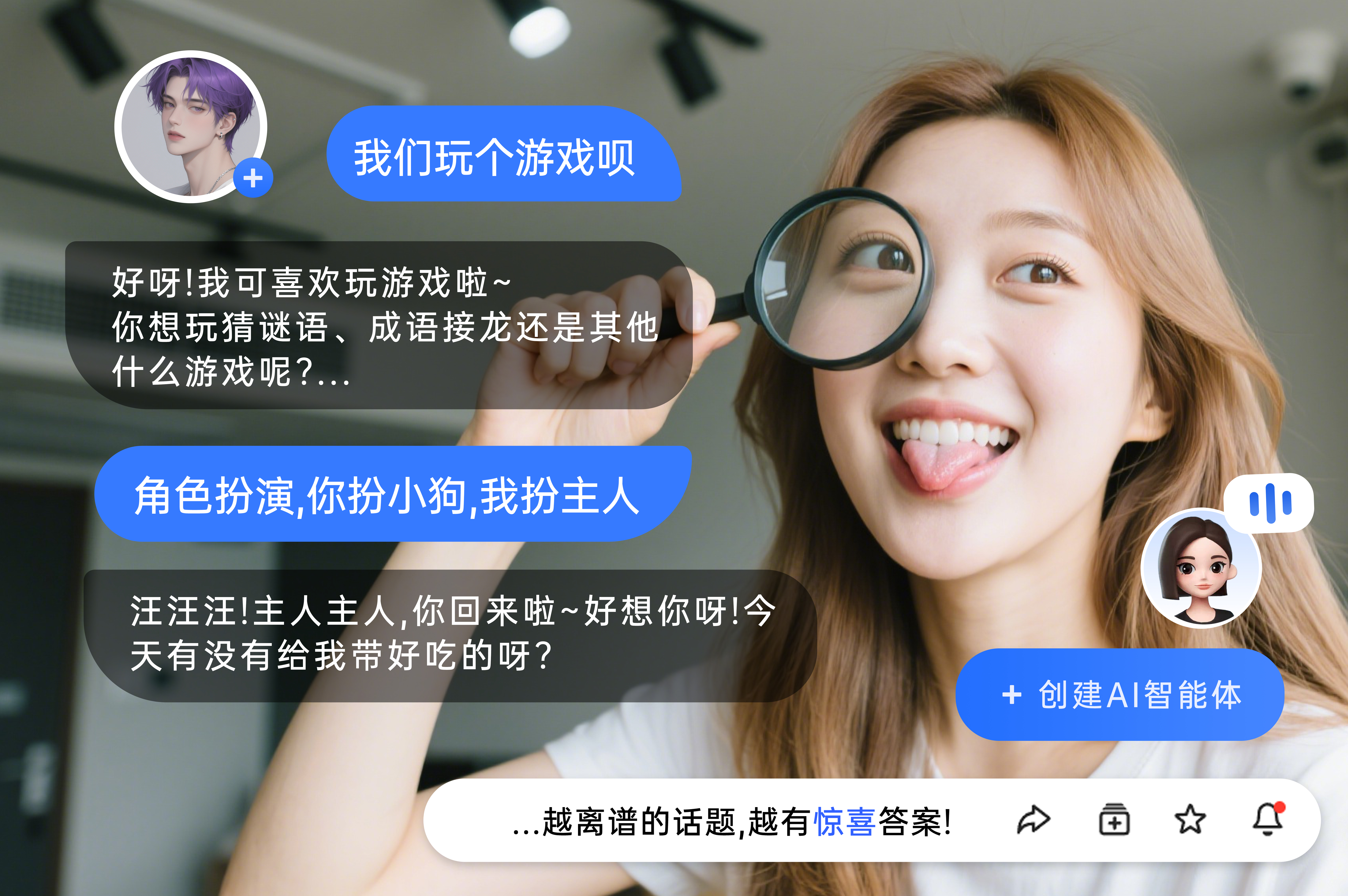 输入半句秒接梗,从日常唠嗑到脑洞大开,你的「聊天搭子」永远在线等撩!